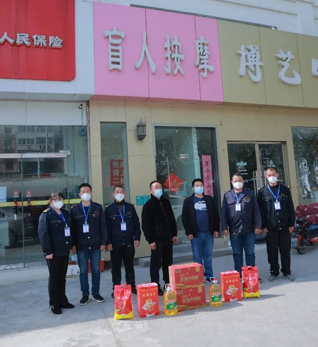 于是,在4月9日早上,新城公司志愿者李根、吳宗、郭開明、陳新讓、張鐘源、秦娟在取得復工復產工作證后,立刻一起前往超市采購大豆油,大米、面、方便面、成箱奶、水果、蔬菜等物資,不能趕來的志愿者蔣林和張濤為此也捐了款,在第一時間把物資送到孫彩云所在的小區(qū)及盲人按摩店里。