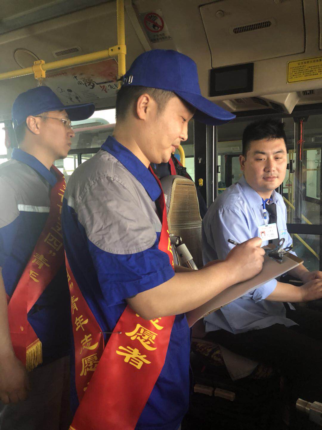 47名公交青年職工身披紅色綬帶,分組來到民樂園、風(fēng)華園、惠民小區(qū)、高鐵、淮西客運站等居民小區(qū)、站臺,發(fā)放《公交乘車指南》,邀請熱心乘客填寫《乘客滿意度調(diào)查表》,傾聽市民的意見和建議。同時,幫助市民安裝手機“掌上公交”APP,添加徐州公交微信公眾號方便市民及時了解公交信息動態(tài),并贈送紀念品。在高鐵等公交站臺,公交青年看到需要幫助的乘客,還不時去攙扶老年乘客、幫助乘客搬運行李等,在淮西客運站車場,保修青年志愿者幫助駕駛員檢修車輛,傾聽駕駛員意見和建議。