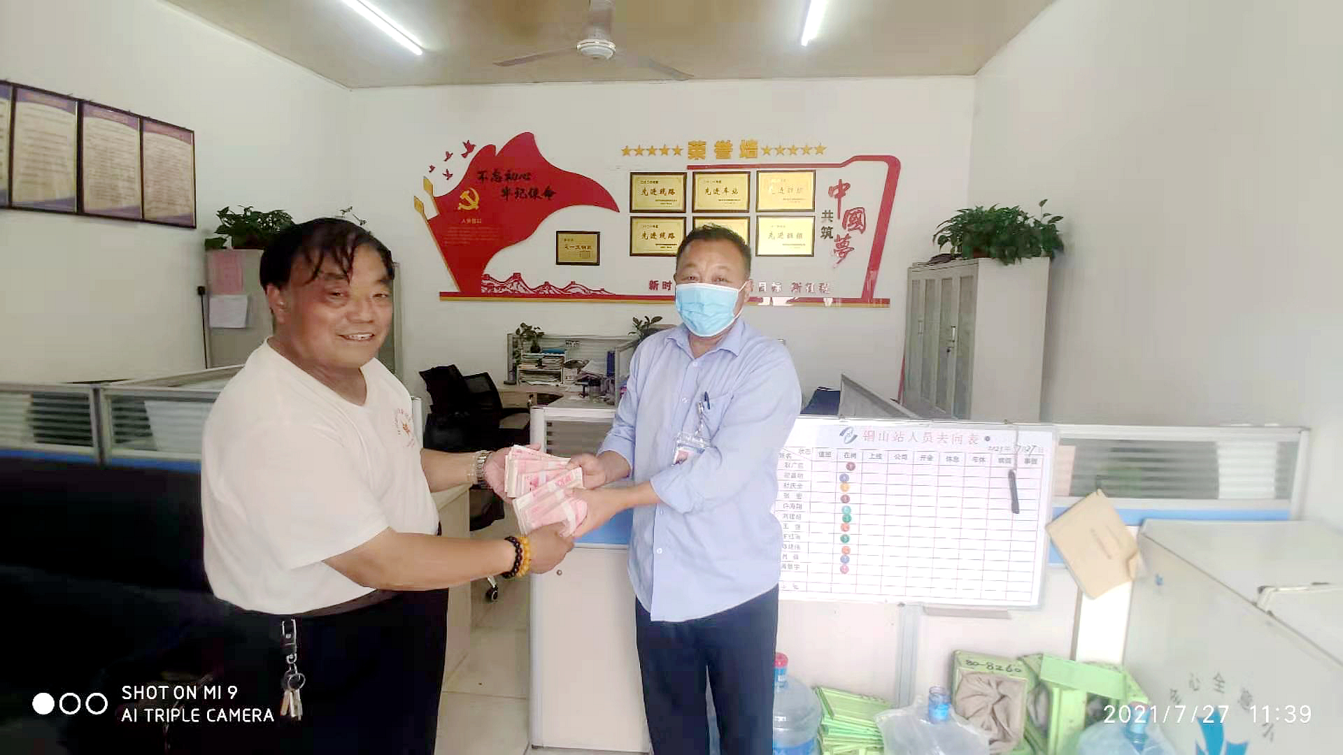 耿站長(zhǎng)在調(diào)取車輛監(jiān)控錄像后發(fā)現(xiàn),遺失布包的乘客從張集上車,在汽車南站下車時(shí)將紅色布包忘在了車上。就在耿站長(zhǎng)準(zhǔn)備撥打110報(bào)警電話求助時(shí),一男子急匆匆地來到辦公室,稱他的包遺忘在83路公交車上,里面有好多現(xiàn)金,請(qǐng)車站工作人員幫忙查一下。在通過監(jiān)控比對(duì)、身份證驗(yàn)證及失主敘述后,耿站長(zhǎng)拿出紅色布包請(qǐng)張先生確認(rèn),張先生非常激動(dòng),連聲道謝,稱贊公交駕駛員拾金不昧的精神。