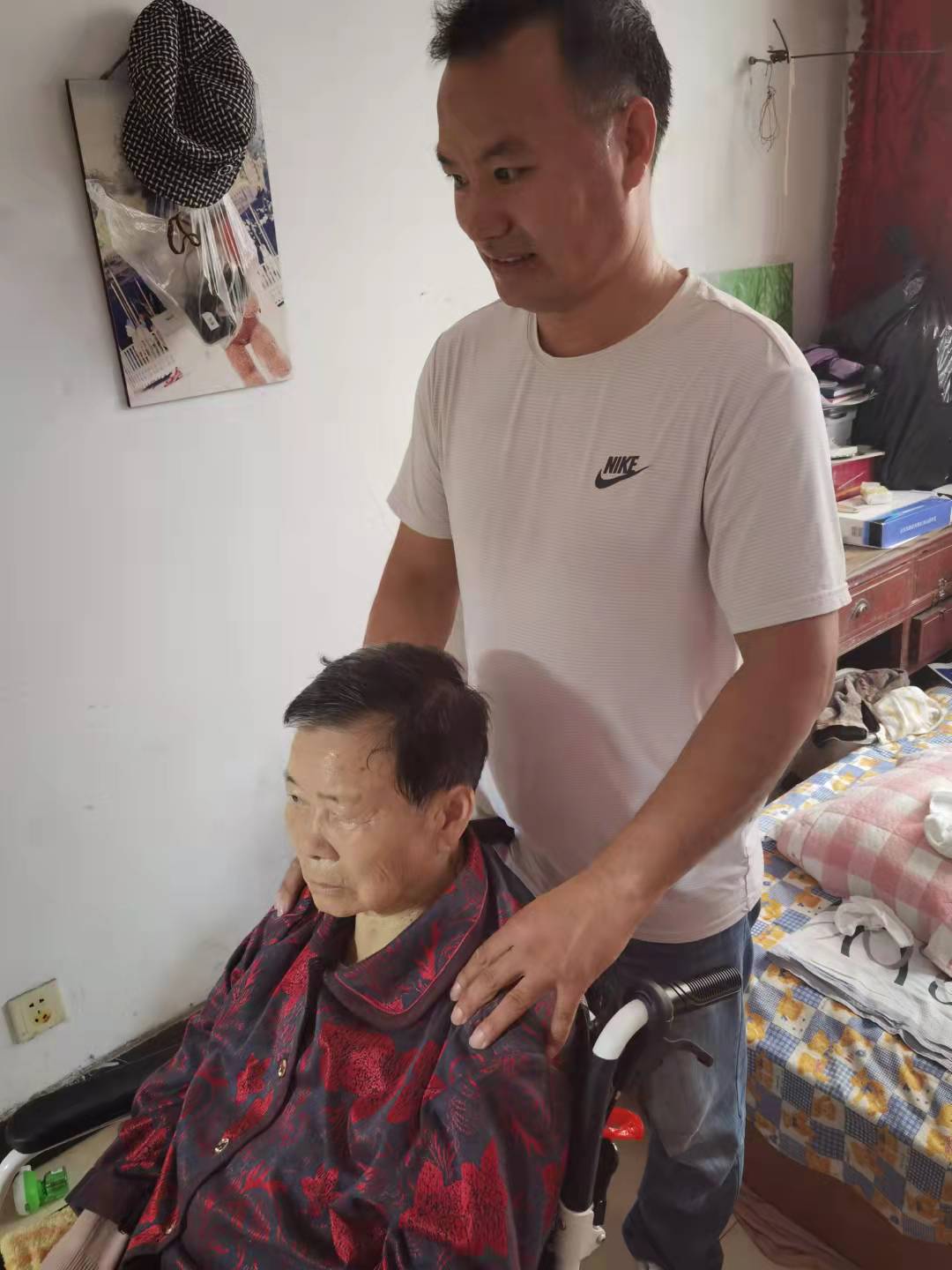 五年前,李淑英老人患上了神經(jīng)元漸凍癥,臥病在床,老伴因病去世,唯一的女兒常年在外工作,無法陪護(hù)在老人身邊。謝新建得知后,便默默地承擔(dān)起照顧老人的重任。按摩、翻身、喂藥……幾年下來,照顧老人已經(jīng)成為一種習(xí)慣。