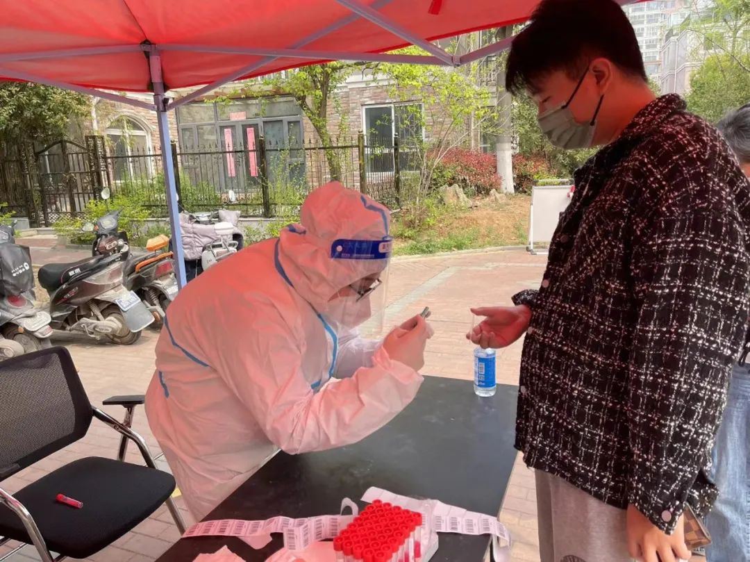 4月7日起,我被安排到社區(qū)進(jìn)行核酸采樣信息錄入,換上防護(hù)服,經(jīng)過(guò)簡(jiǎn)單的培訓(xùn),即刻“變身”成了核酸檢測(cè)信息員。第一次穿上“大白”的衣服,心情忐忑緊張,既要保證登記無(wú)誤,還要高速有效,我在手上反復(fù)操作測(cè)試。在錄入過(guò)程中很多學(xué)生沒(méi)有身份證,需要手動(dòng)錄入,但帶著防護(hù)面罩經(jīng)常起霧,要反復(fù)確認(rèn);穿著防護(hù)服,不能喝太多水,也不敢去廁所,因?yàn)榉雷o(hù)服脫下來(lái)就要重新?lián)Q一套新的……一天連續(xù)工作了8個(gè)小時(shí),全身衣服濕透,摘下防護(hù)面罩的時(shí)候真是像脫了一層皮,渾身像散了架一樣。但是與始終奮戰(zhàn)在社區(qū)防控第一線,每天只睡了3、4個(gè)小時(shí)的社區(qū)書(shū)記鄧巖相比,我所做的微不足道。聽(tīng)到社區(qū)的鄰里對(duì)我說(shuō)的一聲聲“感謝”,那一刻我感到自己所做的一切都是值得的。