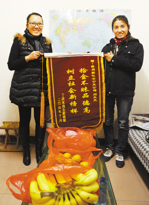 10月17日,乘客丁女士將“拾金不昧品德高、樹(shù)立社會(huì)新榜樣”的錦旗送到8路駕駛員劉元元和車(chē)隊(duì)領(lǐng)導(dǎo)手中。