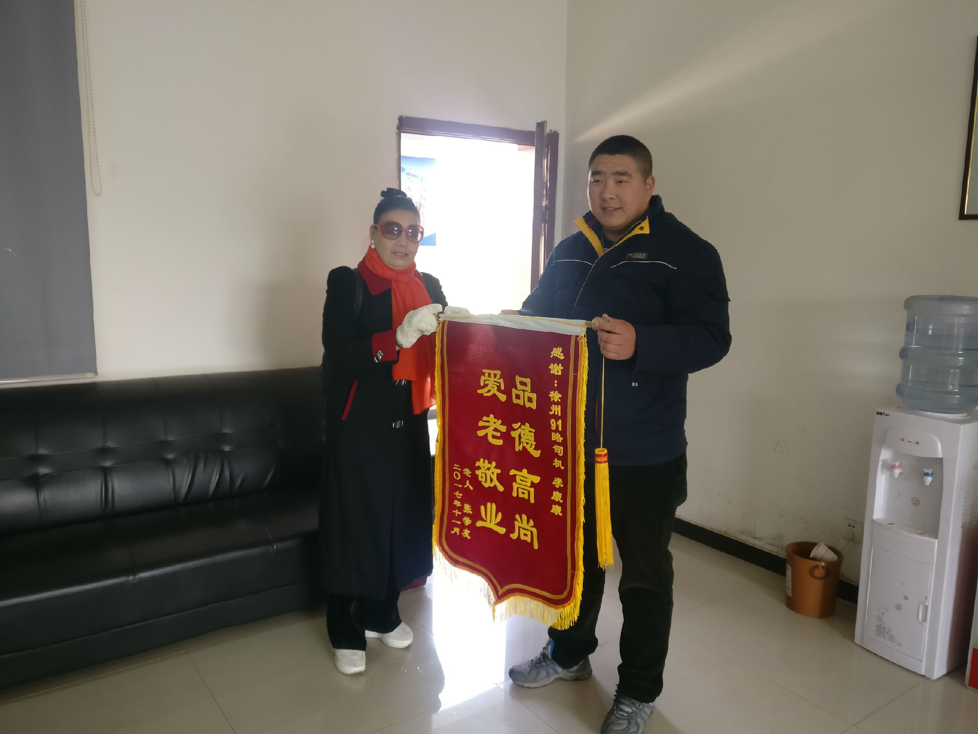 11月21日,李康康正執(zhí)行末班車的任務(wù),夜晚寒冷,車上乘客也比較少。即將到達(dá)終點(diǎn)站時(shí),車上僅剩一位年近70的張女士,李康康看她神情慌張地看著窗外。經(jīng)詢問(wèn),得知張女士剛搬到新城區(qū)住不久,迷路了??紤]到張女士年齡較大,于是就把想送張女士回家的想法向線路長(zhǎng)及公司做出了匯報(bào)。經(jīng)批準(zhǔn)后,他開車將張女士送回了家。事后,張女士為了表達(dá)謝意,給李康康送來(lái)一面錦旗。