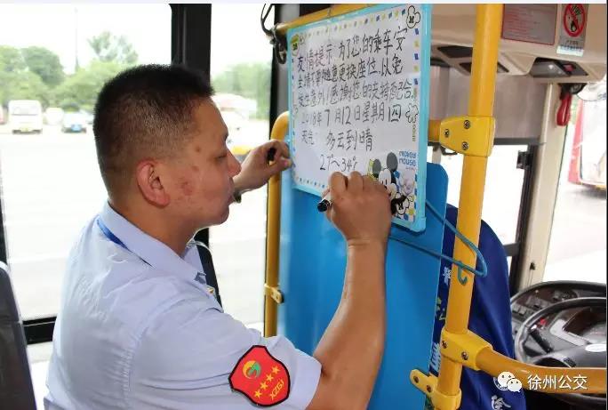 原來他已養(yǎng)成了習慣,在他的駕駛室后方掛著一塊白板,寫著乘車的溫馨提示語和天氣情況。每天他都會記錄下當天的天氣情況:“為了您的乘車安全,請不要隨意更換座位。感謝您的支持!2018年7月12日星期四,多云到晴,27~34攝氏度”,“特別是老年人、孩子,開車時換位子太危險了?!毖λ山忉尩馈?/span>