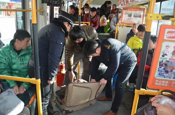 12月2日,在第三個全國交通安全日來臨之際,公交服務(wù)督導(dǎo)隊聯(lián)合公安公交管理大隊開展了危險品大檢查。檢查組分為5個小隊,分別在火車站廣場、副廣場,東甸子公交站臺,對公交車乘客攜帶物品進(jìn)行仔細(xì)檢查,確保公交乘客安全。